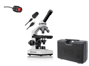 -De microscoop moet de mogelijkheid bieden om “door te lichten”, oftewel, de lichtbron bevindt zich onder de kruistafel en schijnt door het object.